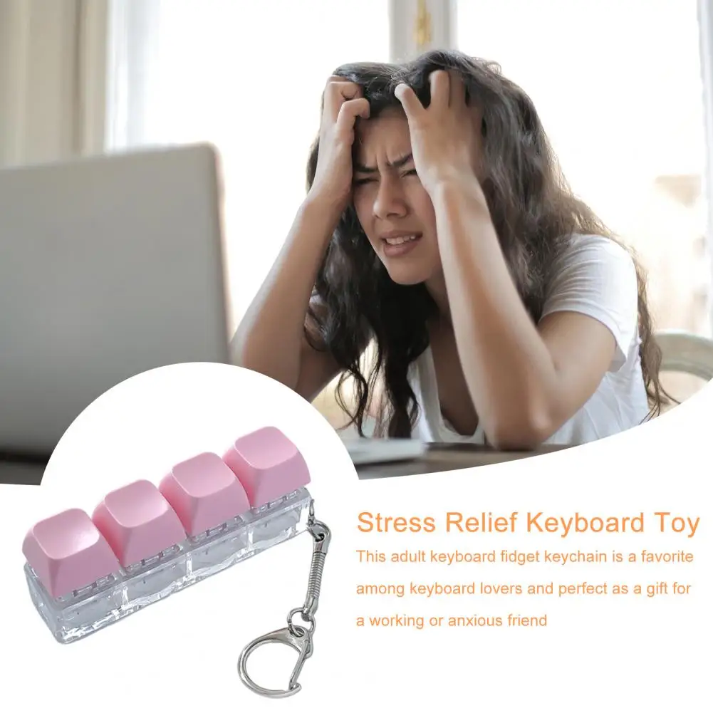 Mechanical Keyboard Fidget Keychain Stress Anxiety Relief Portable Travel Quiet Kids Adults 4 Keys Clicking Sensory Keycap Toy